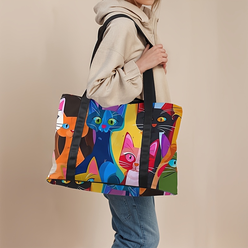 TEMU 대용량 여행 가방, 귀여운 만화 고양이 디자인, 스포츠, 헬스, 요가에 적합하며 주말 오버나이트 가방 및 여행 가방 정리함으로도 사용 가능