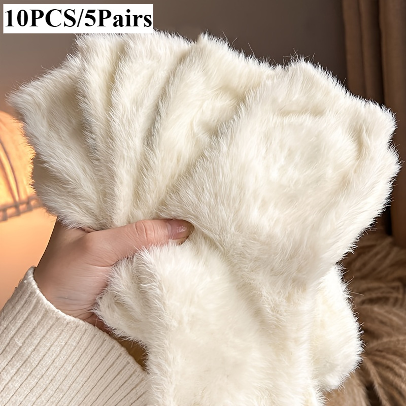 TEMU 여성용 울트라소프트 플러시 5켤레 - 밍크퍼지 텍스처, 폴리에스터 혼방 보온 겨울양말, 미디엄 튜브 솔리드컬러 편안함, 세탁기 사용 가능한 실내외 캐주얼 사계절/겨울화, 내구성 & 부드러운 착용감, 추위에 강한