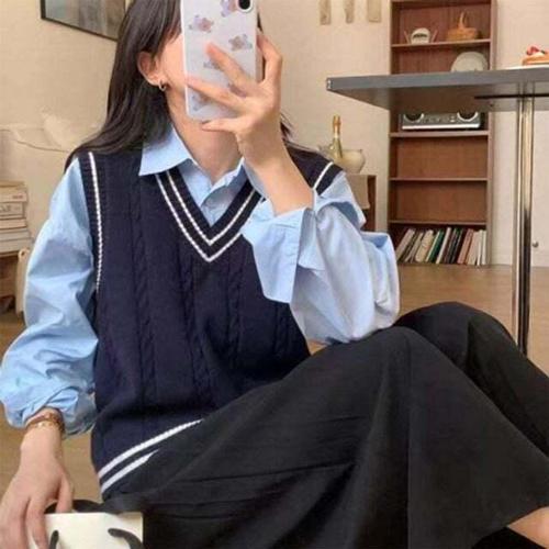 [셀럽하우스]외출 QRUF3922 여성 캐주얼 배색 라인 필수템 브이넥 캐주얼 니