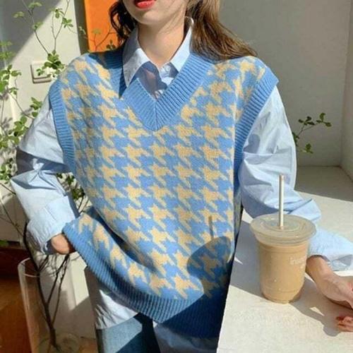 [셀럽하우스]간절기 CWKT6297 여자 캐주얼 데이트 룩 필수템 하운드 체크 니