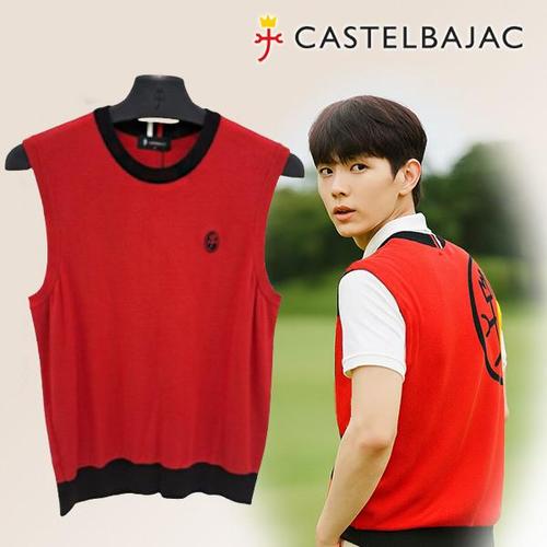 [까스텔바작]남성골프웨어 라운딩 조끼 로고 가을 컬러블록 라운드 니트 베스트