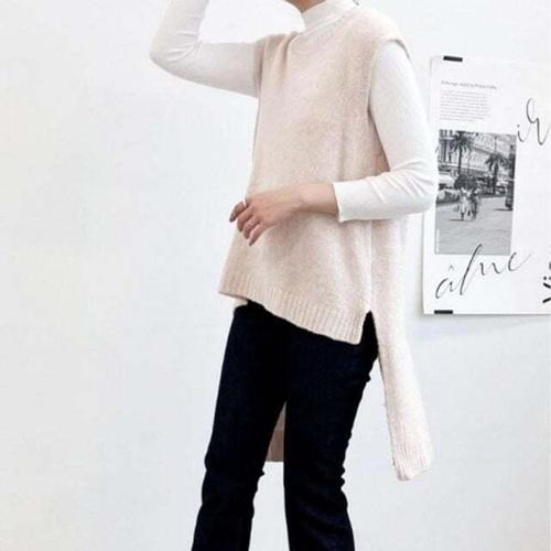 [셀럽하우스]여성 IIDR9202 언발 캐주얼 롱니트 조끼 필수템 여자 라운드 트