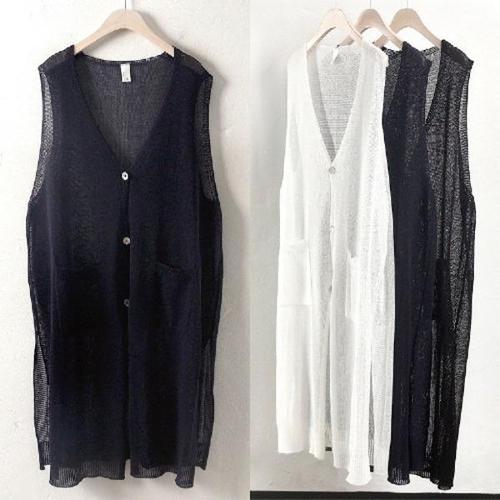 니트공장 루즈핏 겹 브이넥 옆절개 롱 니트베스트 여성베스트 빅사이즈