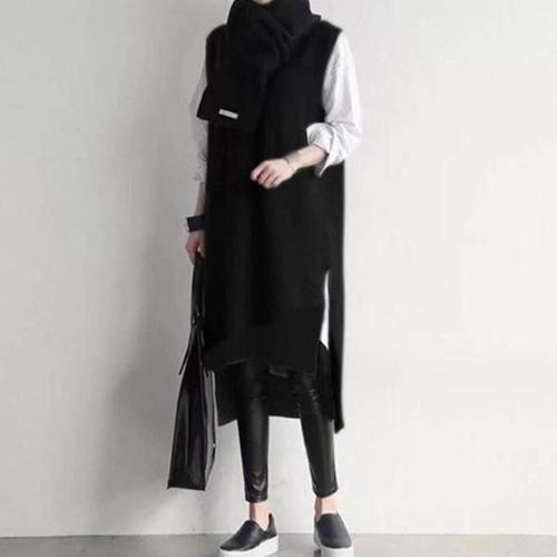 [엄지척]여성 V넥 옆트임 롱 니트 조끼 오버핏 옆트임 베스트_19680900_667501