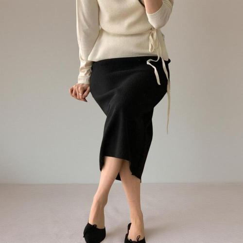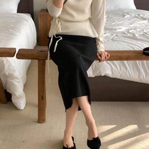 엘케이트 여성 FW 데일리 베이직 스트링 니트 롱스커트 LDEK003