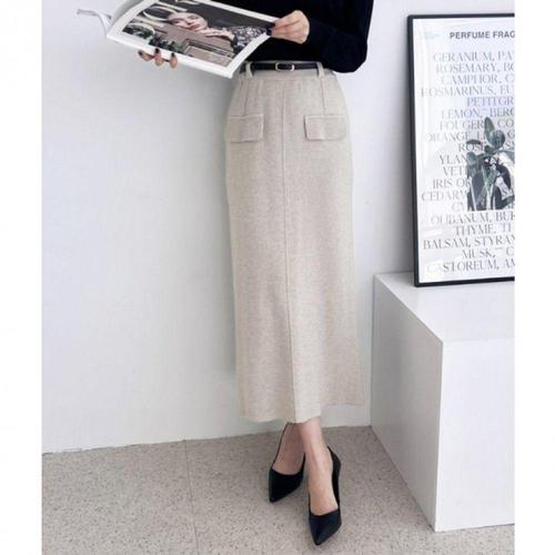 [오너클랜]인기상품 니트 여성용 H라인 트임 롱 스커트 벨트 [WFLHIYT_260208]