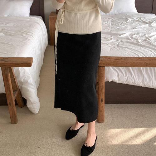 [옷자락]여성 겨울 데일리 H라인 골지 니트 롱 스커트
