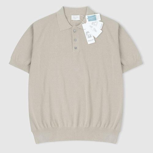 [리빌모아]남자 버튼 카라넥 솔리드 반팔 니트티 AT-KNH-Q001-베이지