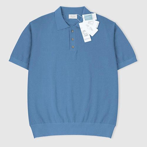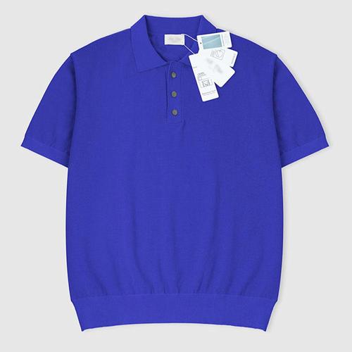 [리빌모아]남자 버튼 카라넥 솔리드 반팔 니트티 AT-KNH-Q001-코발트