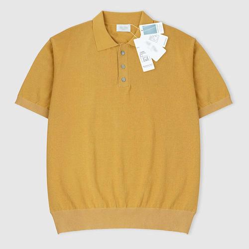 [리빌모아]남자 버튼 카라넥 솔리드 반팔 니트티 AT-KNH-Q001-머스타드