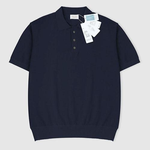 [리빌모아]남자 버튼 카라넥 솔리드 반팔 니트티 AT-KNH-Q001-네이비
