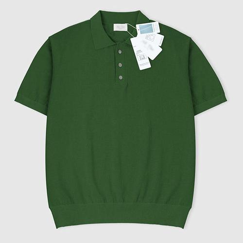 [리빌모아]남자 버튼 카라넥 솔리드 반팔 니트티 AT-KNH-Q001-그린