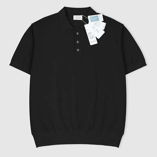 [리빌모아]남자 버튼 카라넥 솔리드 반팔 니트티 AT-KNH-Q001-블랙