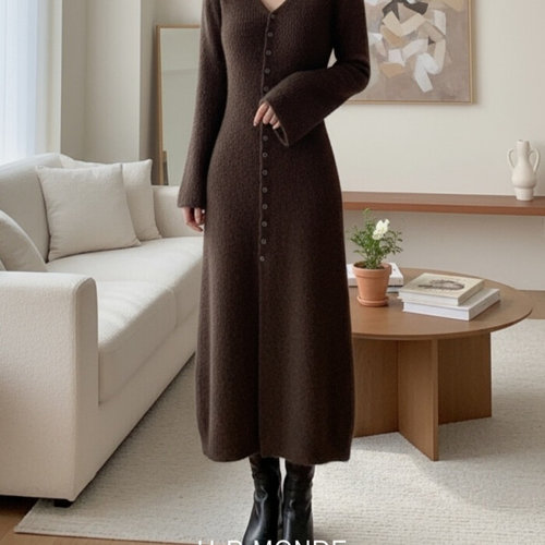 유아몽드 / U.R MONDE 미니 버튼 롱 니트 원피스 가오리핏 슬림핏