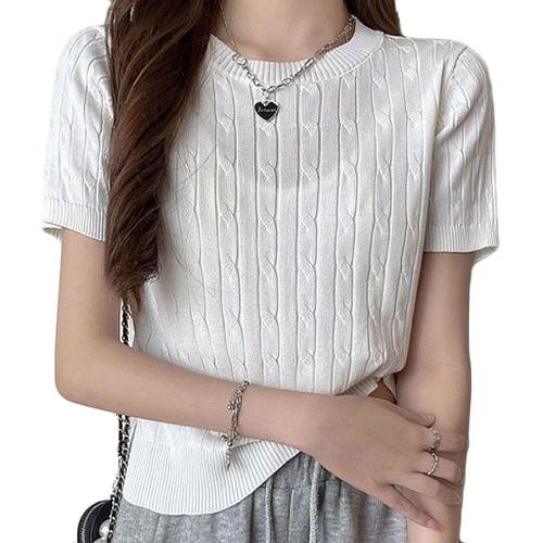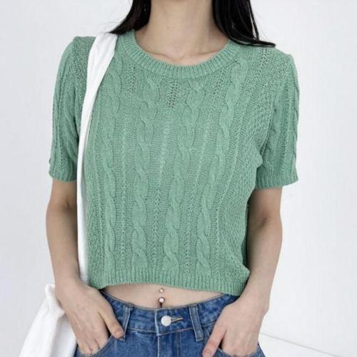 데일리 크롭 꽈배기 니트티 신상 반팔 여성 티셔츠 (WFHVNWR)