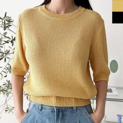 [에이치플러스몰]여자 베이직 세미크롭 라운드넥 반팔 올데이 니트티 1