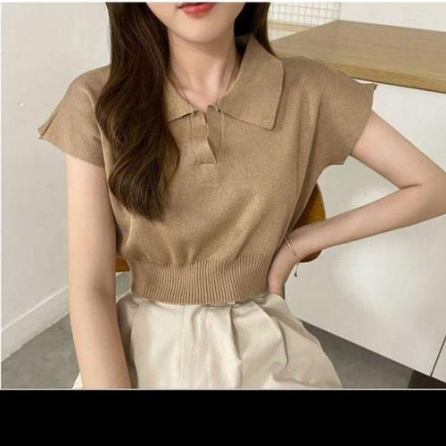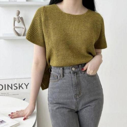 [셀러허브_여성트랜드패션]여름 반팔티셔츠 니트원단 크롭기장 봄 라운드넥