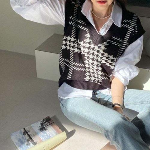 [셀럽하우스]오버핏조끼 RFKV0739 루즈 핏 니트 봄 고급 베스트 가을 쪼끼