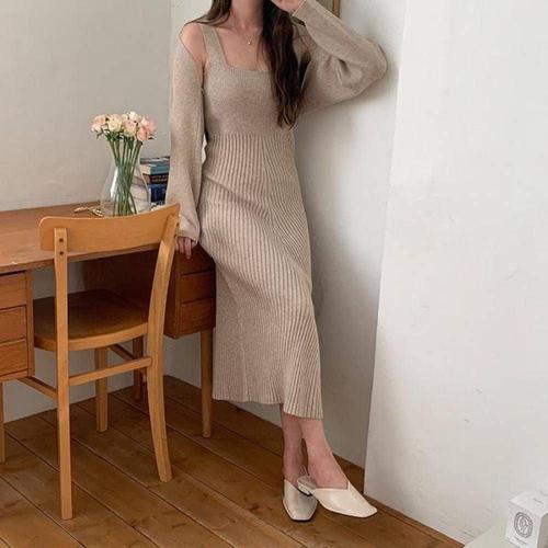 [셀러허브_여성트랜드패션]Rly 1062 롱원피스볼레로세트 여자슬림핏 골지니트