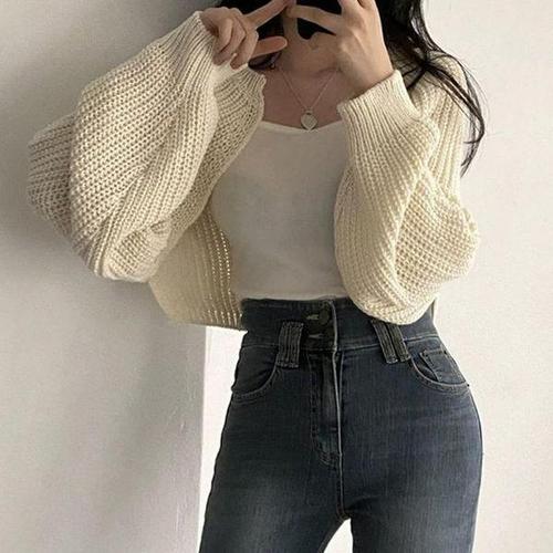 노이디제이 여성 데일리 퍼프 소매 크롭 볼레로 니트 긴팔 가디건 DJ1110