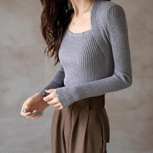 [다잇템]여성 페미닌 옆면 원숄더 롱슬리브 원컬러 니트