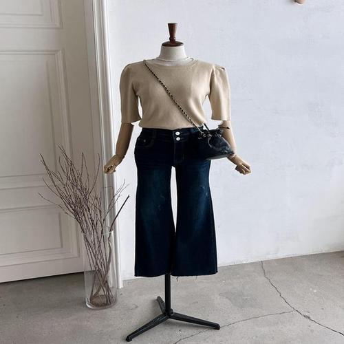 [셀럽하우스]여성 PUMF1014 퍼프숄더 배색 반팔 니트