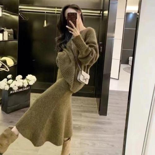 엘럽 여성용 정장세트 살구색 스웨터 세트 한겨울 니트 톱 스커트 투피스 힛템