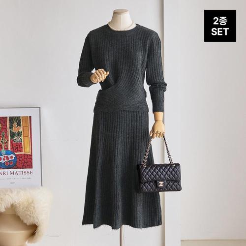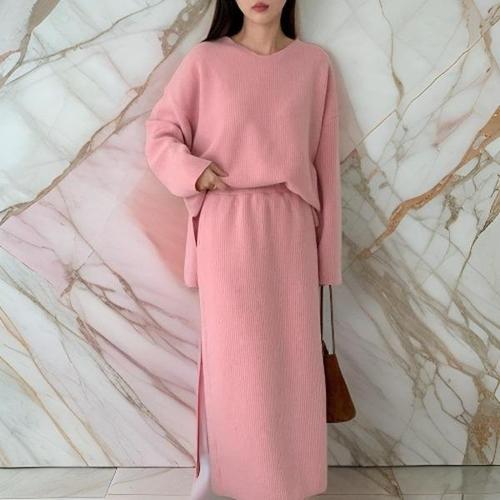 그리리 부드러운 니트 투피스 세트 치마 롱기장 3가지 색상