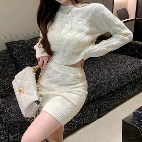 [엄지척]라운드넥 크롭 니트 H라인 미니 니트 스커트 세트_19659897_667501