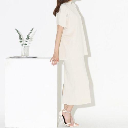 (스타일하우스) 니트티 스웨터 티셔츠 여성 롱 스커트 반팔티 세트 여자 치마 니트티