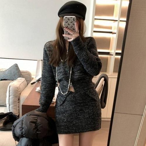 [엄지척]버튼 미니 스커트 투피스 니트 세트 일체형 깔끔한_19627086_667501