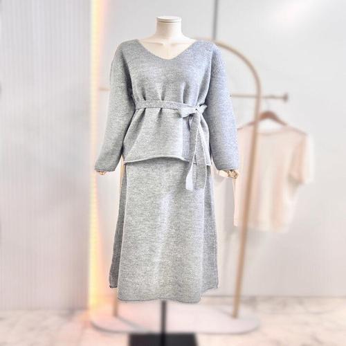 [스타일리쉬바이피클]브이넥 니트 스커트 벨트 상하 코디 세트 FSDAST60AD1