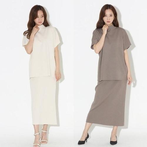 패션] 롱 스커트 반팔 투피스 세트 JSC24062204 니트 미디 롱