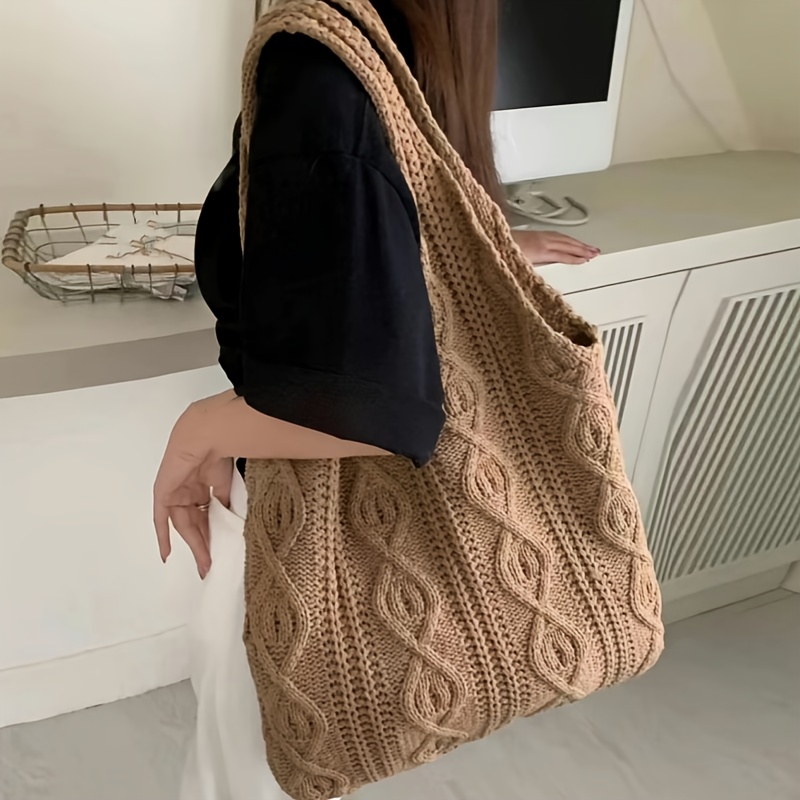 TEMU 1개 대용량 캐주얼 신상 한국식 시크한 니트 플라워 여성용 휴대용 숄더백 토트백, 핸드백 심플하고 패셔너블한 휴가 해변 캐주얼 웨이브 토트백 대용량 숄더백 다용도 웨이브백|슬링백
