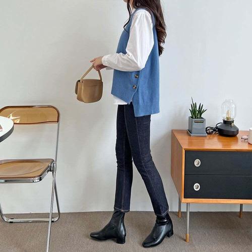 [셀럽하우스]에어리 PHEC2145 라운드넥 데일리 옆버튼 루즈핏 니트 조끼