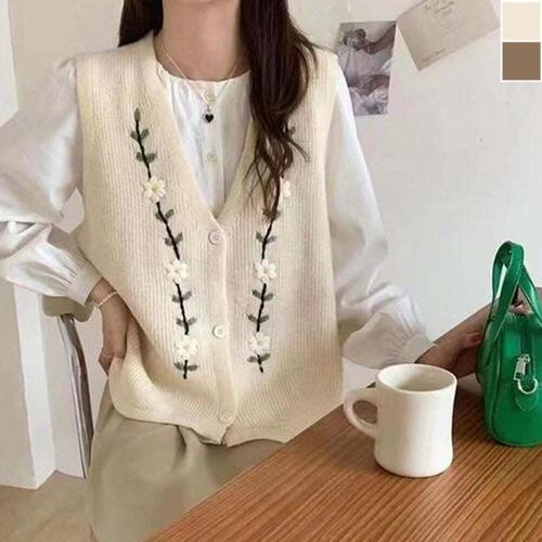 [셀럽하우스]여자 BLPR3229 플라워 브이넥 트렌드 니트 조끼 데일리 봄가을