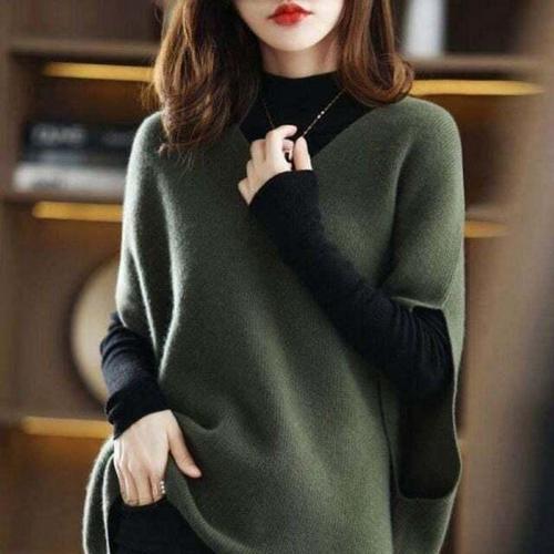 [셀럽하우스]니트조끼 HSOY4536 롱 브이넥 판초 베스트 언발 니트베스트 여