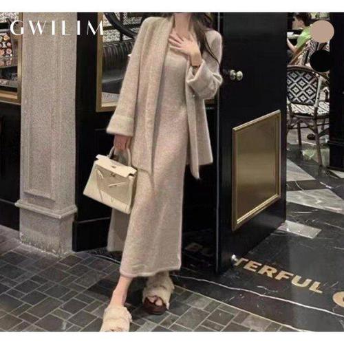 [셀러허브_여성트랜드패션]니트 원피스 긴팔 가디건 세트 2종 코티 투피스
