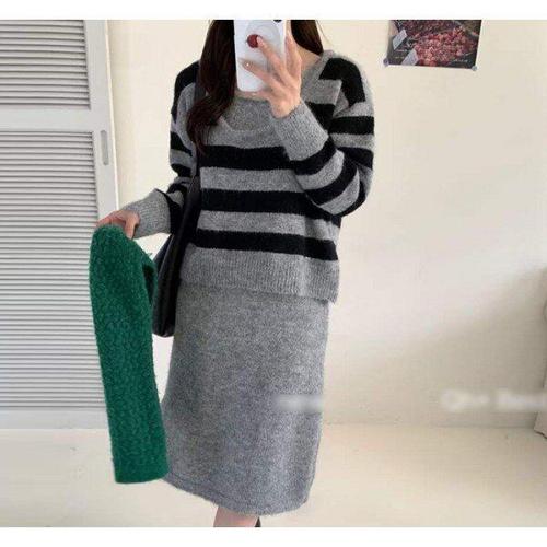 [귈림](귈림) (2종세트)스트라이프 니트+미디 원피스(G4WSE002P)