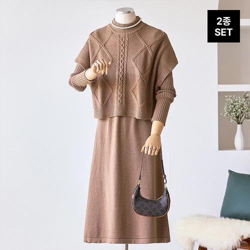 [커스텀에이블] 반목조끼 니트원피스 2종세트_T2511SE040D