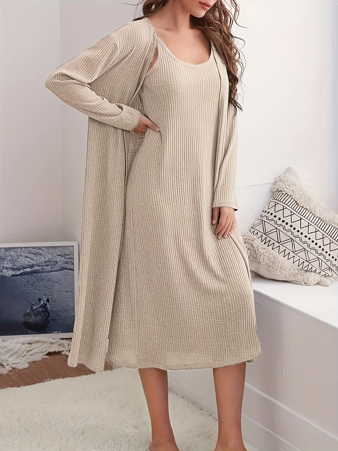 TEMU 신상 인기 가을/겨울 단색 여성용 라운지웨어 세트. 민소매 스퀘어넥 캐미솔, 탄성 허리 밴드 팬츠, 긴팔 가디건이 특징입니다. 편안하고 넉넉한 잠옷 세트입니다.