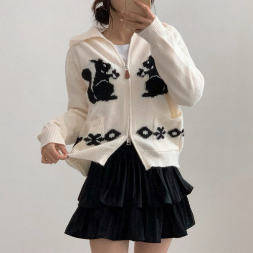 입꼬 / 다람쥐 노르딕 투웨이 카라 니트 집업3color