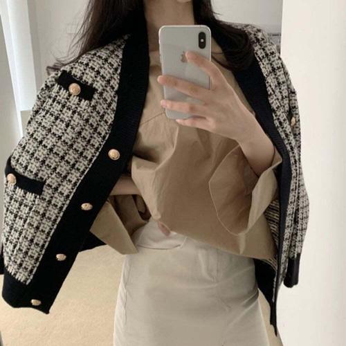 [오너클랜]인기상품 고급무드 트위드 골드버튼 가디건 자켓 블랙화이트 데일리룩 [WFLXZDA_260211]