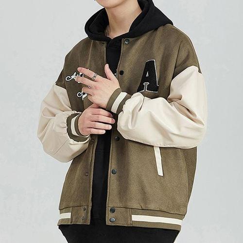 [어바웃탑]힙한 오버핏 스웨이드 투톤 스타디움 점퍼
