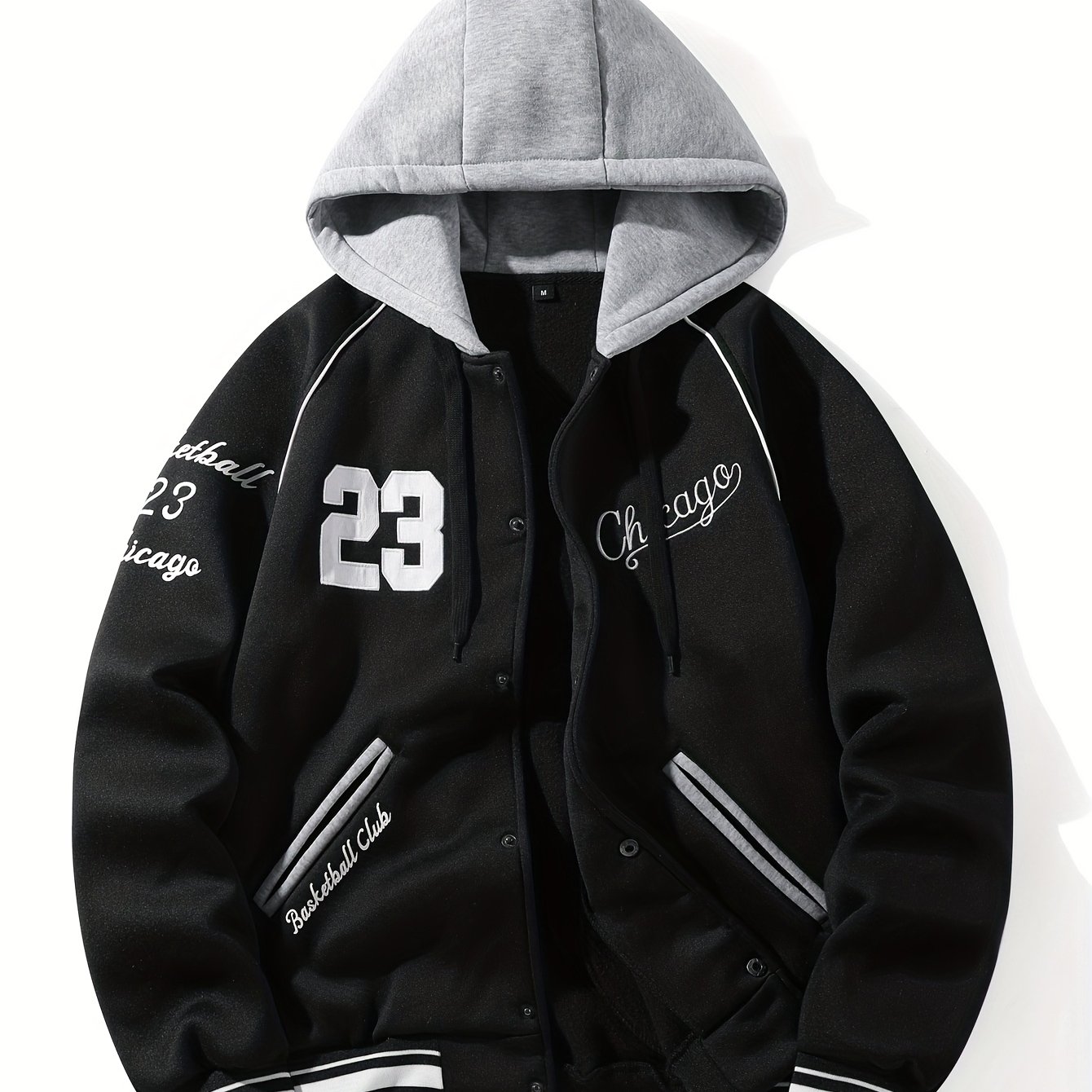 TEMU 남성 스트리트웨어 후드 야구 재킷 - 파이핑, 스냅 클로저, 긴소매, 레귤러 핏, 가을/겨울 캐주얼 아우터, 데일리 스트리트웨어