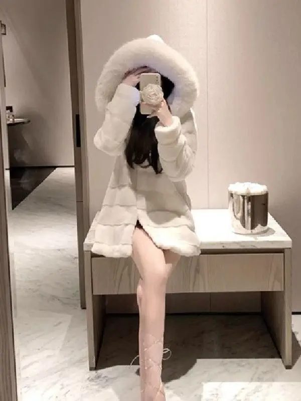 친환경 초대형 중간 길이 밍크 퍼 칼라 폭스 두꺼운 코트 젠틀 영 퍼 코트 프린세스 스타일 다크 버튼
