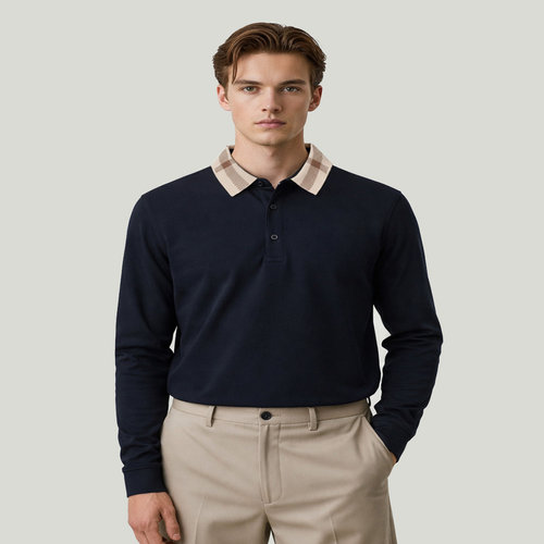 코엑티 남성 봄 가을 체크 포인트 카라 긴팔 티셔츠
