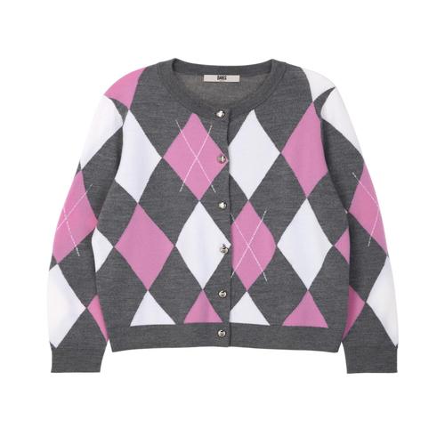 닥스 여성 핑크 아가일패턴 울 라운드가디건 (DLSW6A109P2)