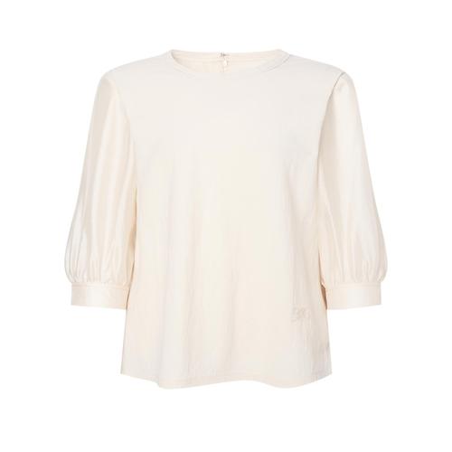 닥스 여성 베이지 로고자수 7부 퍼프 소매 티셔츠 (DLTS5B413I1)