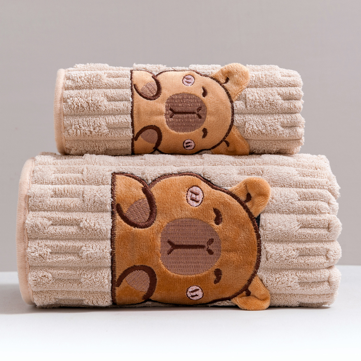 TEMU 2개 귀여운 카피바라 얼굴 목욕 타월 세트 | 매우 부드러운 산호 양털, 34x74인치 타월 & 70x140인치 목욕 시트, 뛰어난 흡수력 및 빠른 건조, 스파, 헬스장, 호텔, 게스트 욕실, 워시 클로스에 적합